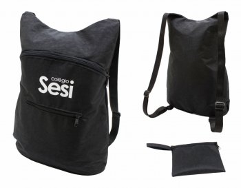 • Descrição: Mochila dobravél em Nylon Amassado, bolso com zíper frontal,