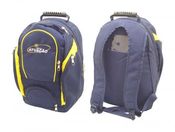 • Descrição: Mochila Verona, com bolsos externos, visor, alça de mão e ombro, regulador e zíper