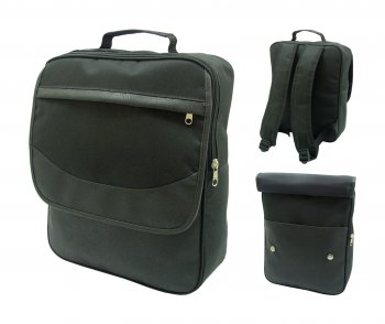 • Descrição: Mochila Verona plastificado, com bolsos externos, elástico, alça de mão e ombro, botão, regulador e zíper