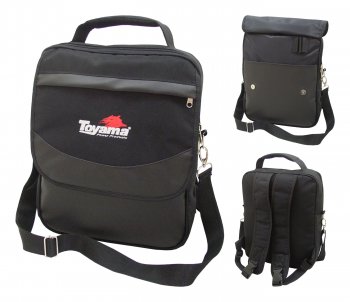 • Descrição: Mochila Verona plastificado, com bolsos externos, mosquetão, recorte, botão, alça de mão e ombro, regulador e zíper
