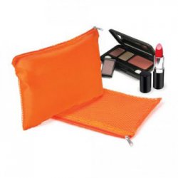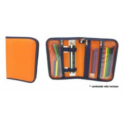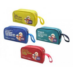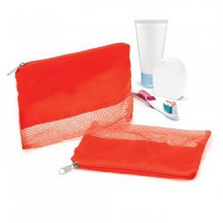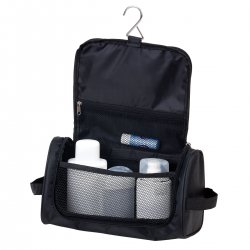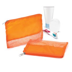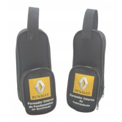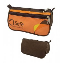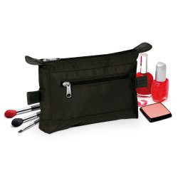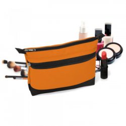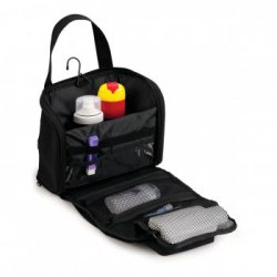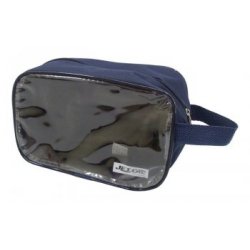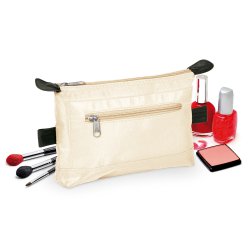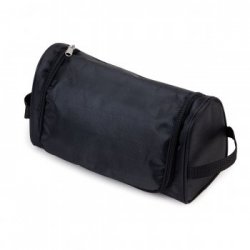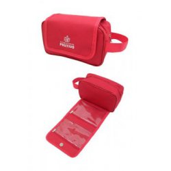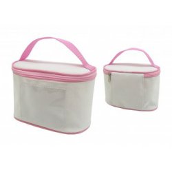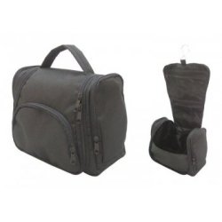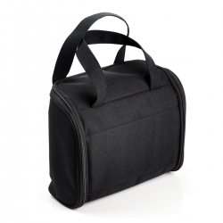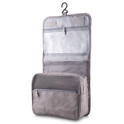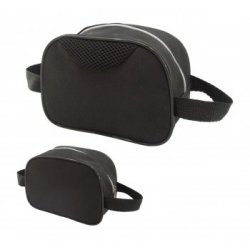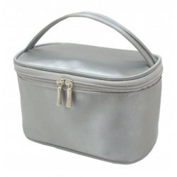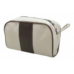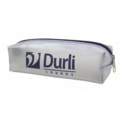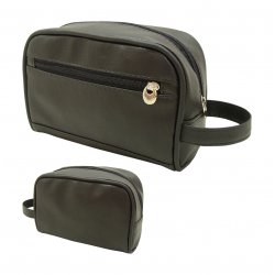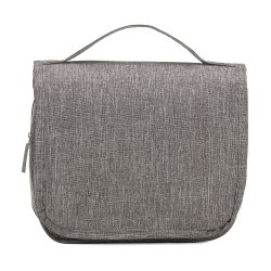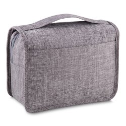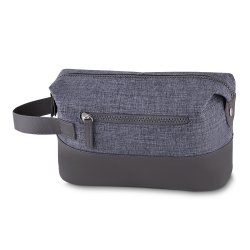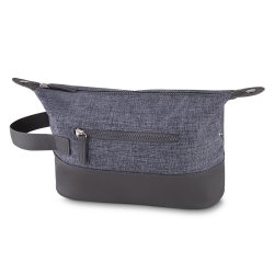 Necessaire Em Poliester 300D Com Detalhes Em Couro - Cinza