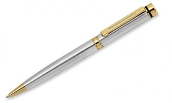 • Descrição: Caneta esferográfica metal Prata com detalhes em Dourado