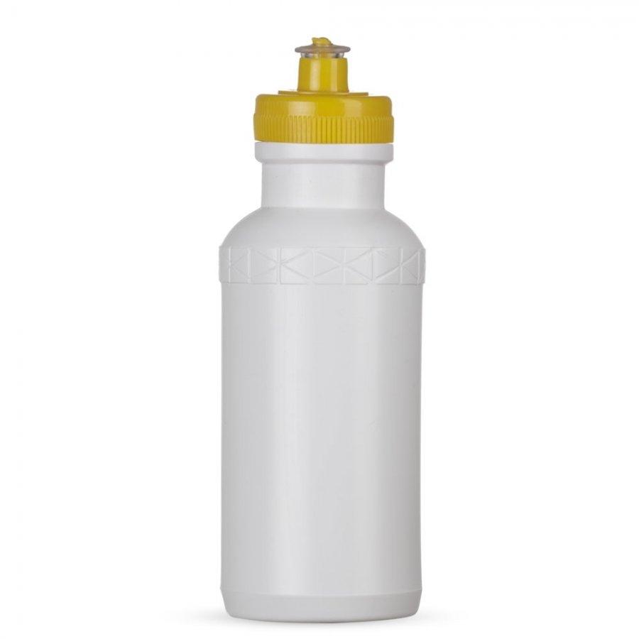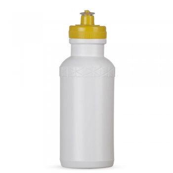 • Descrição: Squeeze de plástico resistente de corpo branco e tampa colorida, possui detalhe em relevo na parte superior e tampa de bico(silicone) rosqueável.