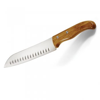 • Descrição: Faca Santoku para fatiar e picar em Bambu/Inox.