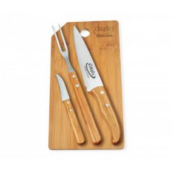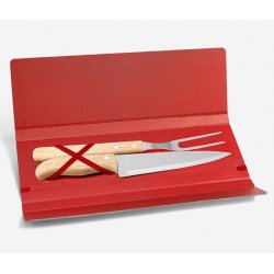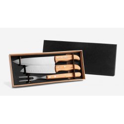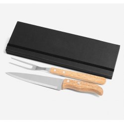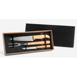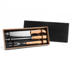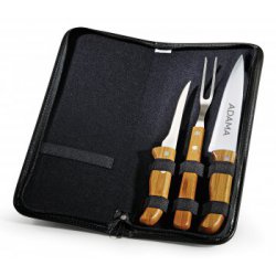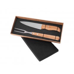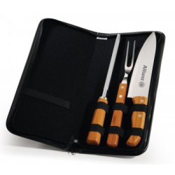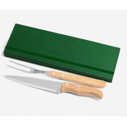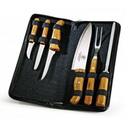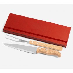 Conj. De Garfo E Faca Inox / Madeira Com Estojo - 3 Pçs