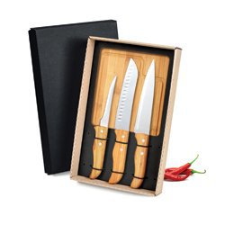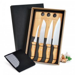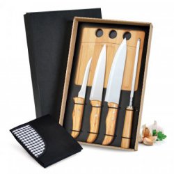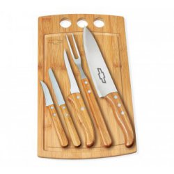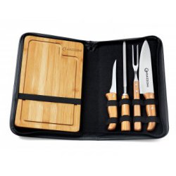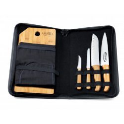 Kit De Facas Inox/Bambu Com Estojo - 5 Pçs