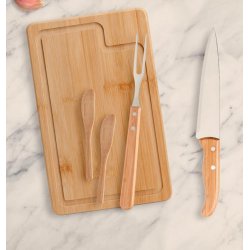 Conj. Para Churrasco Em Bambu / Inox - 3 Pçs