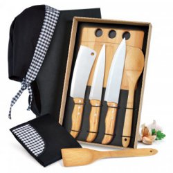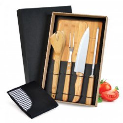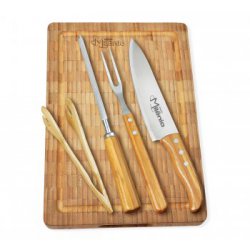 Conjunto Para Cozinha C/ Cepo Em Bambu / Inox - 6 Pçs
