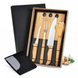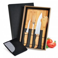 Conj. Para Churrasco Em Bambu / Inox - 4 Pçs