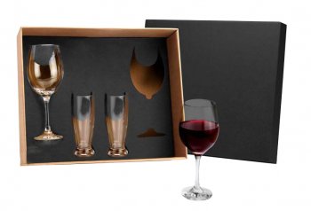 • Descrição: Jogo de copos para Vinho e Cerveja; Conta com dois copos para Cerveja e dois copos para Vinho em vidro.