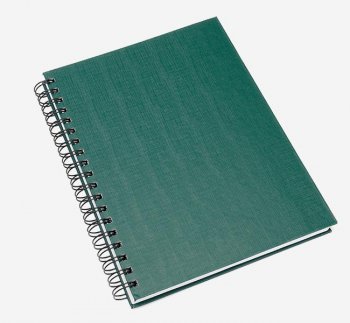• Descrição: Caderno para anotações wire-o verde com capa dura revestida em percalux linho. Com folha para dados pessoais e calendário. Gramatura da folha de 70 g/m2.