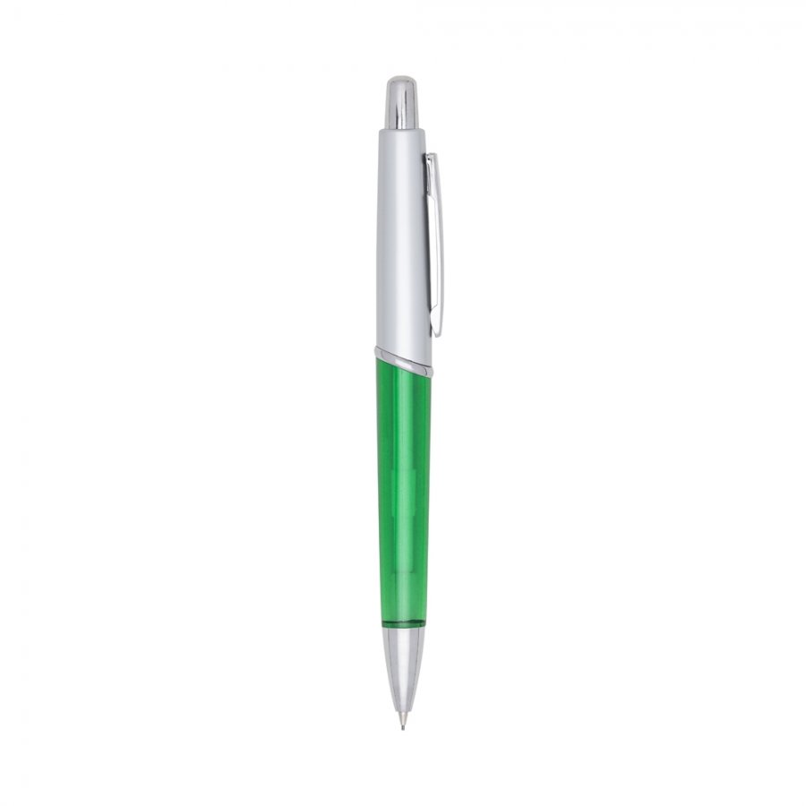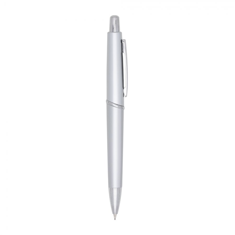 • Descrição: Lapiseira plástica prata com detalhes coloridos translúcidos.