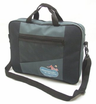 • Descrição: Pasta para evento em poliéster 600 plastificado, alça de mão e ombro, com uma divisória e bolso externo